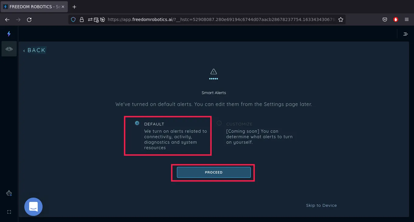 We will choose the DEFAULT option and continue by clicking PROCEED.