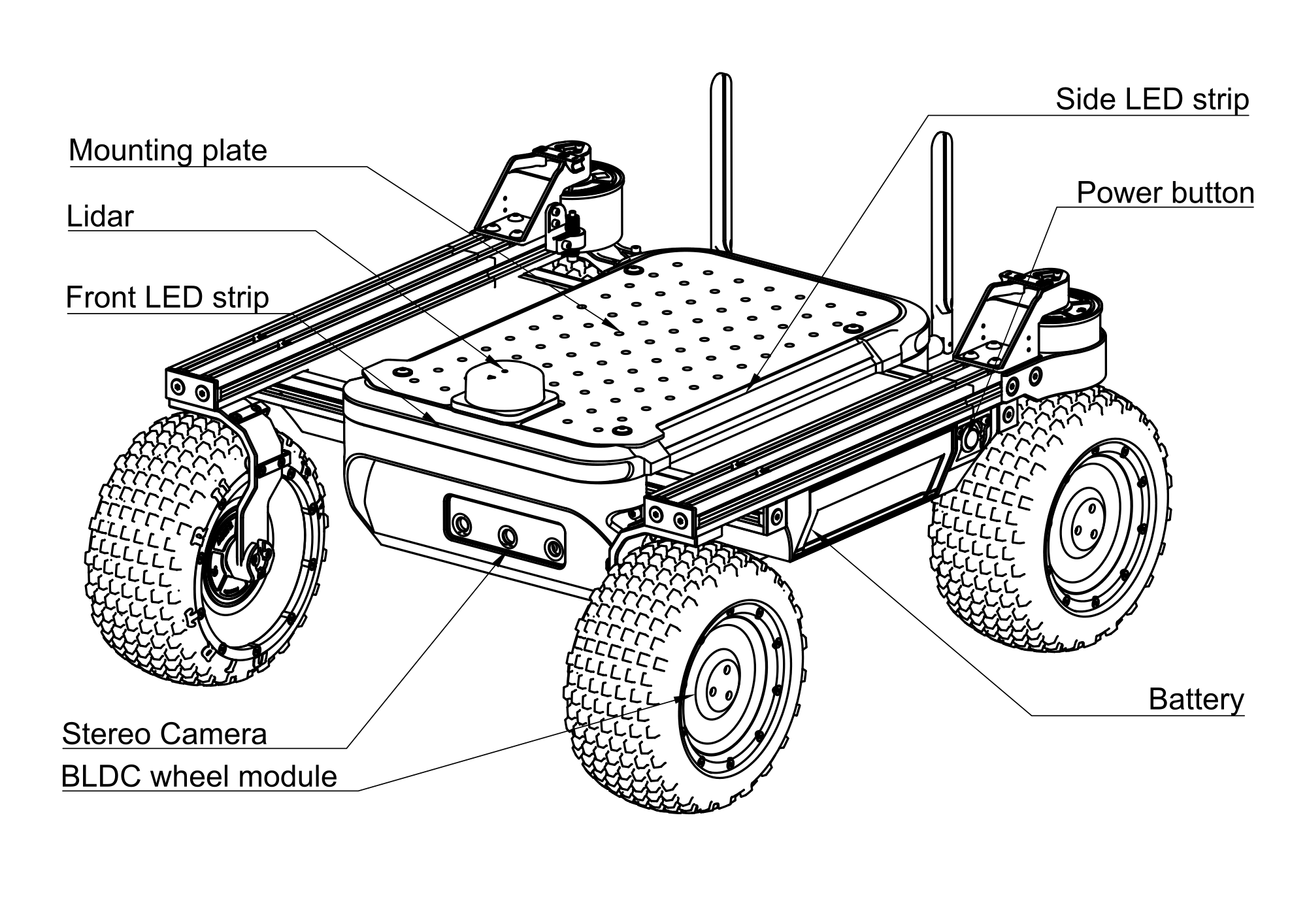 | Power button / Emergency stop / Calibration button | Dedicated safety and control inputs for rover operation. |
